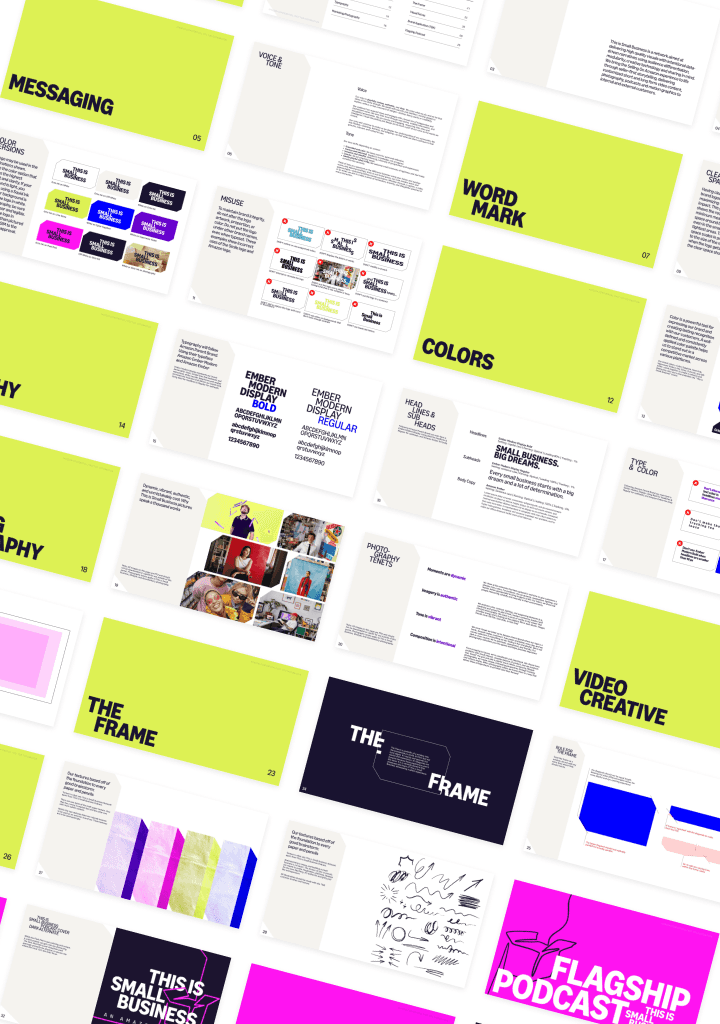 Following the success of This Is Small Business, Amazon expanded the podcast into a broader content network aimed at Gen Z audiences to help shift brand perception and build positive sentiment. I led the rebrand, crafting a fresh identity that centered authentic small business stories while subtly reinforcing Amazon’s role in their success. Through competitive research and multiple rounds of refinement, I developed the logo, color system, and podcast cover that define the brand today. Since launching on YouTube in late December, the channel has reached its subscriber goals and exceeded key industry benchmarks — driven entirely by organic growth.